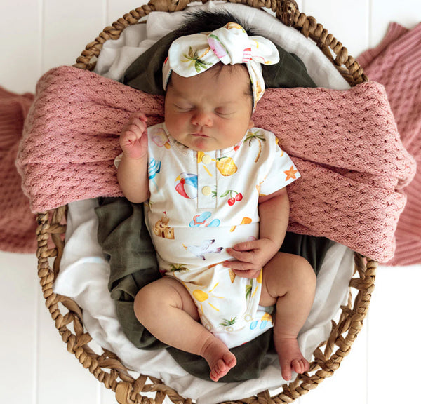 Soft and stretchy, our bodysuits are easy-care and coordinate well with our pants and shorts. Our bodysuits are also really comfortable to sleep in. All Snuggle Hunny clothing is made with GOTS Certified Organic Cotton CU 1182228.