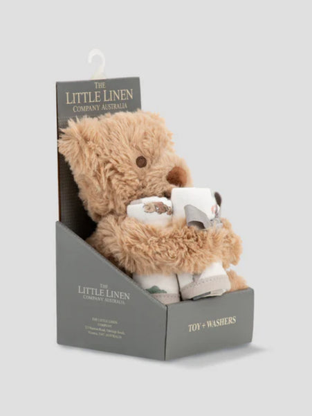 Looking for the perfect blend of comfort and practicality for your little one? Discover this with our Little Linen Plush Toy & Washers. This adorable set features a super-soft plush toy that becomes baby's treasured companion, paired with three versatile washers.